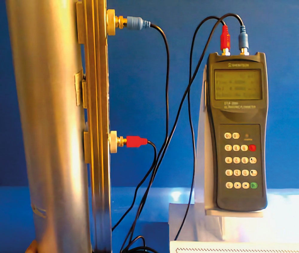 Although flow can be harder to measure than pressure, ultrasonic flow meters can accomplish the task from the outside of the pipe (Figure 2). There are several kinds that may work, depending on the type of pumpage, so it is important that the correct type is selected, and that it is installed and calibrated properly.
