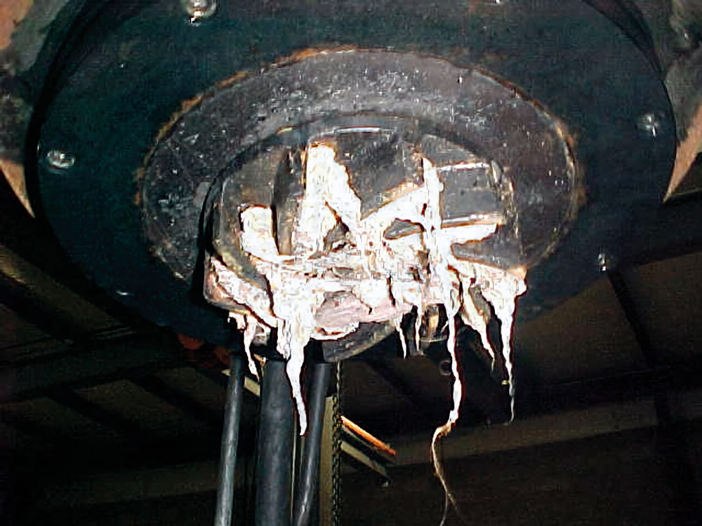 When a pump does not operate on its curve and cavitation and air entrainment have been eliminated, the most likely causes are a damaged impeller, blockage in the impeller (see Figure 3), blockage in the volute, or excessive wear ring or impeller clearance. Other causes would be related to the speed of the pump, such as the shaft spinning in the impeller, or an incorrect drive speed. While drive speed can be verified externally, investigating the other causes will involve opening the pump.