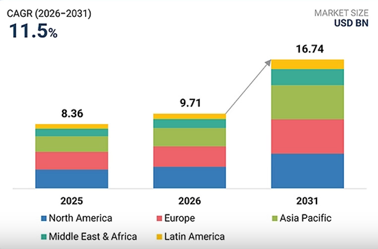 The global predictive maintenance market is expected to grow from USD 9.71 billion in 2026 to USD 16.74 billion by 2031, according to a report by MarketsandMarkets. This represents a compound annual growth rate (CAGR) of 11.5 percent.